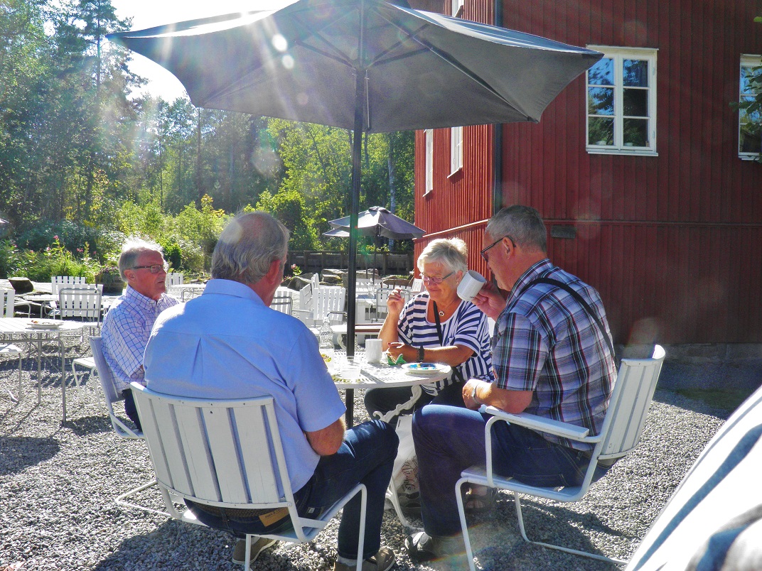 I Växbo gjorde vi halt, åt lunch och botaniserade bland de många hantverksbodarna. I smeddammen simmade jättestora öringar och foreller som ibland hoppade upp ur vattnet och snappade åt sig flygfän. En stig genom skogen och uppför en brant trapp tog oss till ett linneväveri, där vävstolarna dunkade och slog för fullt. Naturligtvis fanns där en välsorterad fabriksbutik med en massa vackra alster från vävstolarna.